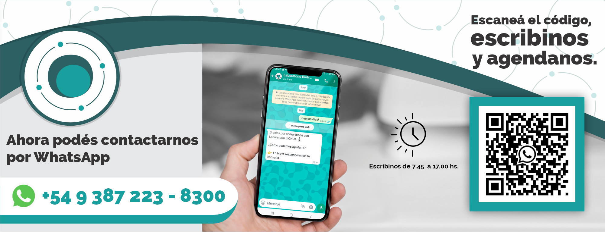 Somos un grupo de Bioquímicos y Técnicos que constituimos BioNoa, un Laboratorio de alta complejidad situado en la ciudad de Salta Capital, asumiendo el compromiso de brindar un servicio integral en el campo de los Análisis Clínicos con una actitud ética, responsable y honesta, asegurando la calidad en nuestros resultados, confidencialidad y la seguridad de nuestros pacientes.